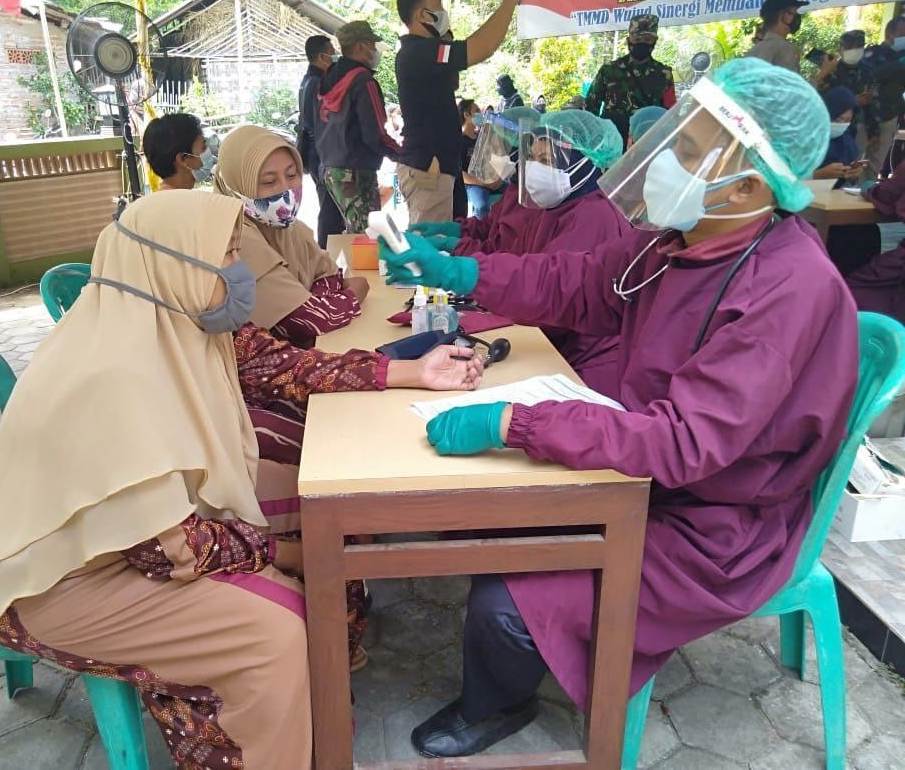 Satgas TMMD melaksanakan vaksin massal ke masyarakat yang berada di Desa Tamansari kecamatan Jaken kabupaten Pati Jawa Tengah, (Pendim).