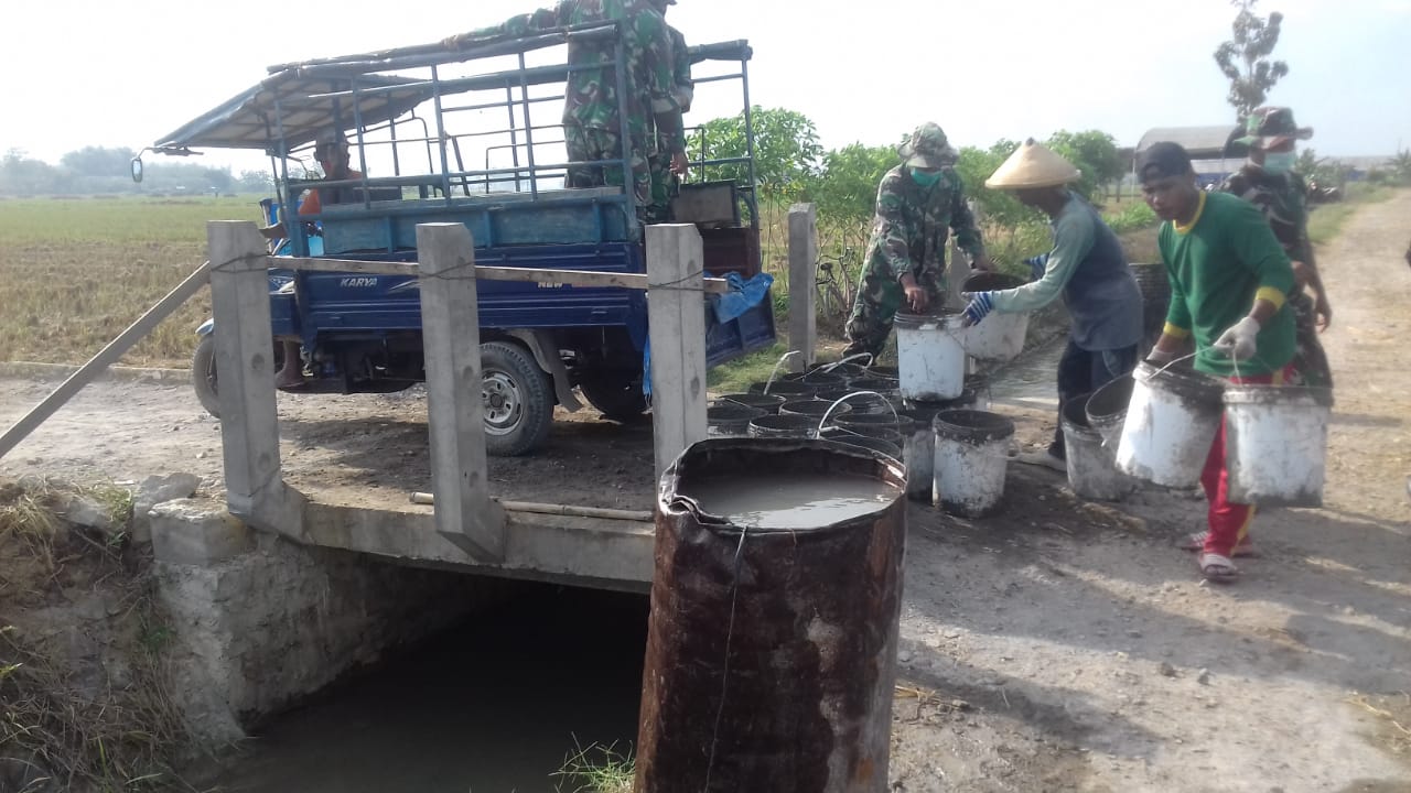 Itulah yang terlihat saat satgas TMMD reg 111 Kodim Pati dengan warga akan melaksanakan istirahat setelah seharian bekerja, sebelum meninggalkan lokasi kerja mereka mengumpulkan peralatan yang telah digunakan untuk kemudian dibilas dengan air yang diambilnya ditepi sungai. Karena banyaknya sisa semen bekas mengecor sehingga pembersihannya perlu ketelitian.