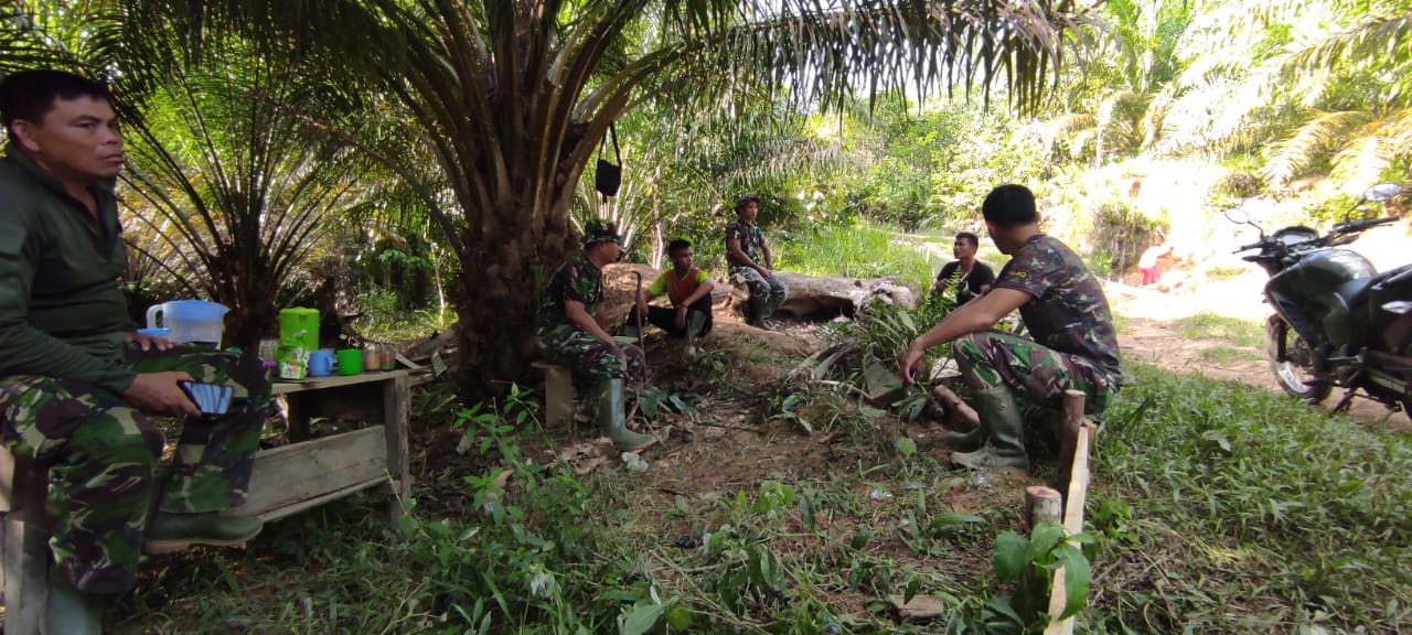 Anggota Satgas TMMD 111 Kodim 1202 /Singkawang Beristirahat di Bawah Pohon Sawit