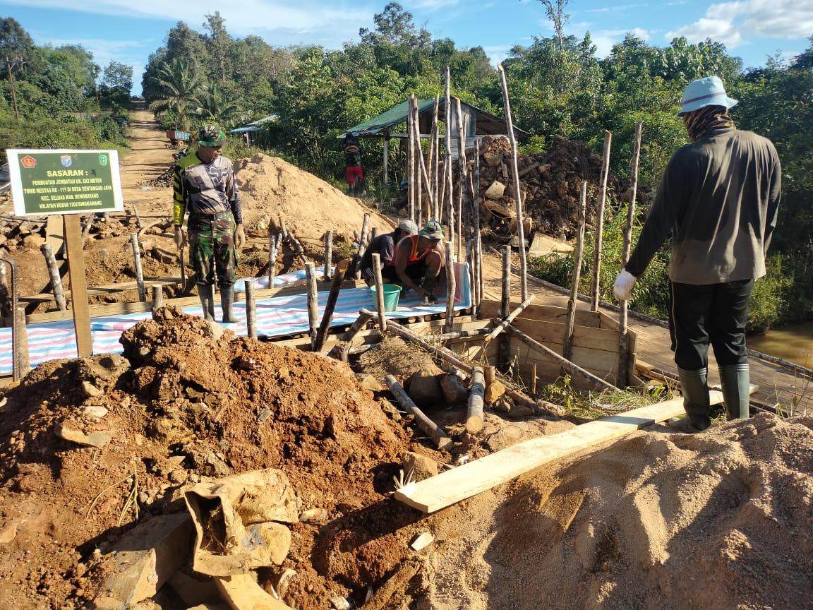 Pjs Danramil 1202-04/seluas mengatakan sasaran yang di kerjakan ini adalah memasang alas kayu untuk jembatan, Karena tidak mudah dan tidak bisa di kerjakan saat hujan.