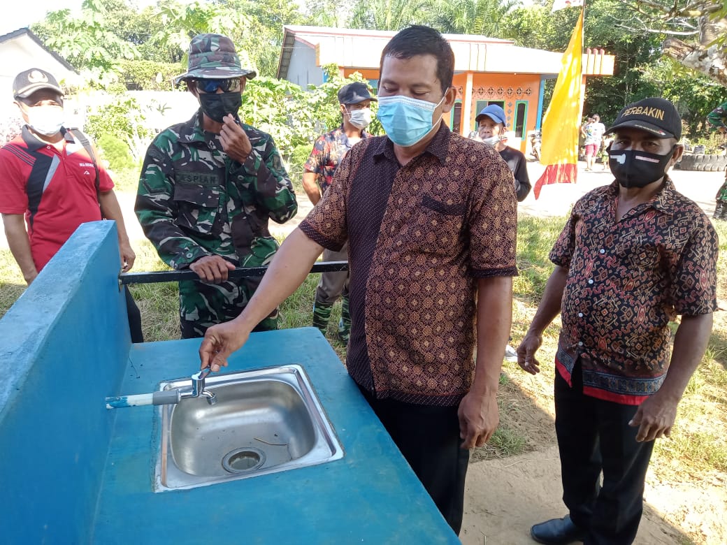 Ia mengatakan, meskipun banyak kegiatan di Desa , para anggota satgas TMMD selalu melakukan dan mengarahkan untuk menerapkan protokol Kesehatan. Salah satunya agar mencuci tangan.