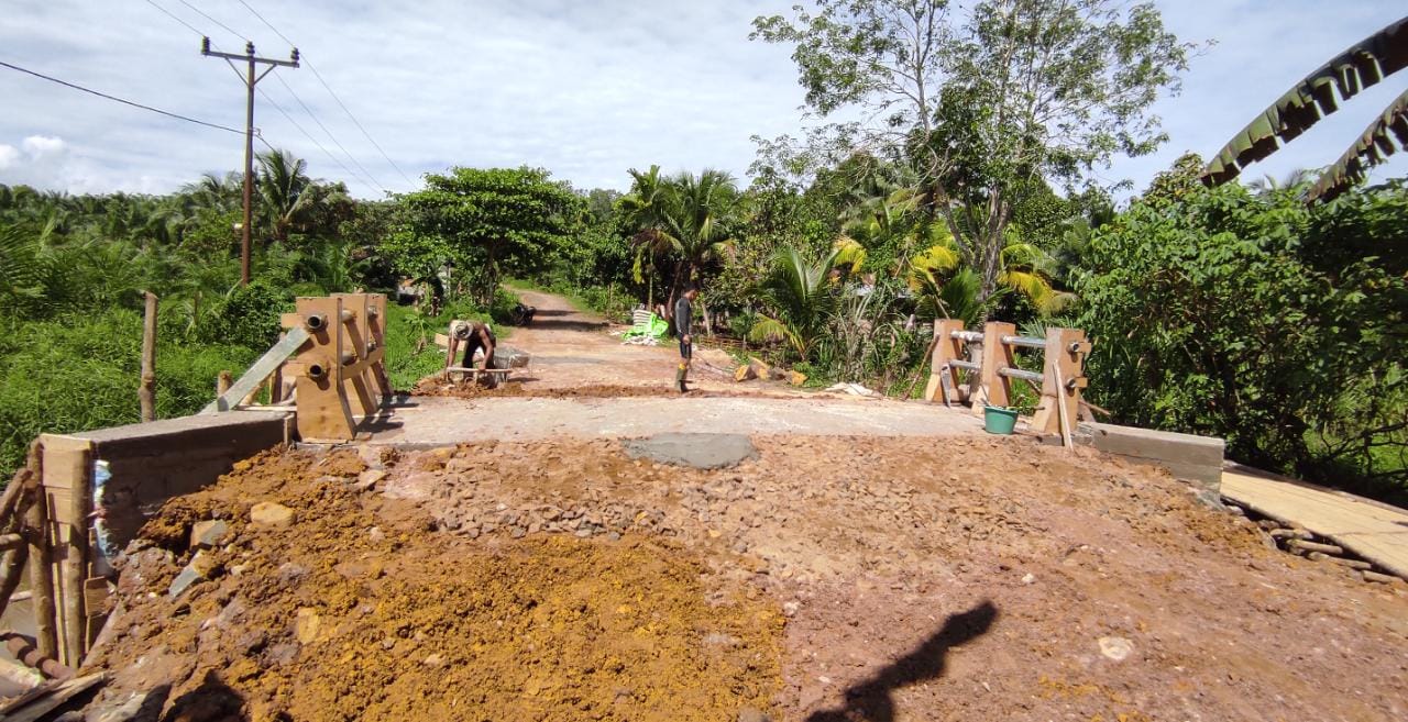 “Pembangunan jembatan sudah hampir selesai dikerjakan, tinggal menyisahkan sekitar 10 % lagi pengerjaan” ujar pjs Danramil 1202-04/seluas Serma Hamdani.
