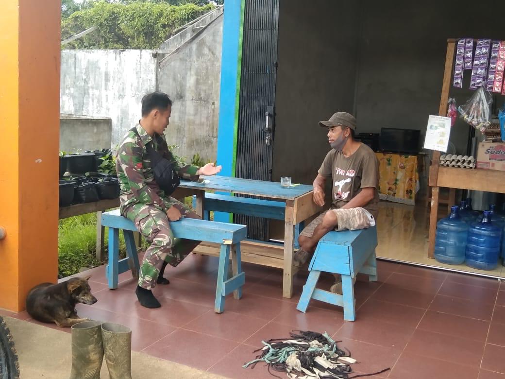 BENGKAYANG – Ditengah kesibukan menjalankan tugasnya sebagai anggota Satgas TMMD ke- 111 Kodim 1202/ Singkawang di Desa Praka Robertus menyempatkan diri untuk komunikasi sosial (komsos) dengan warga setempat.