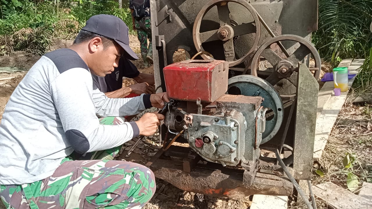 Anggota Satgas TMMD Perbaiki Mesin Molen Yang Rusak