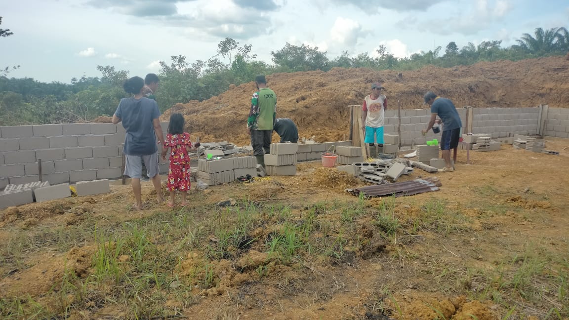 tampak senang dari warga menyaksikan pengerjaan pembangunan pagar gereja yang di kerjakan, pembangunan ini sudah hampir selesai di kerjakan secara bersamaan sama dengan masyarakat sekitar.