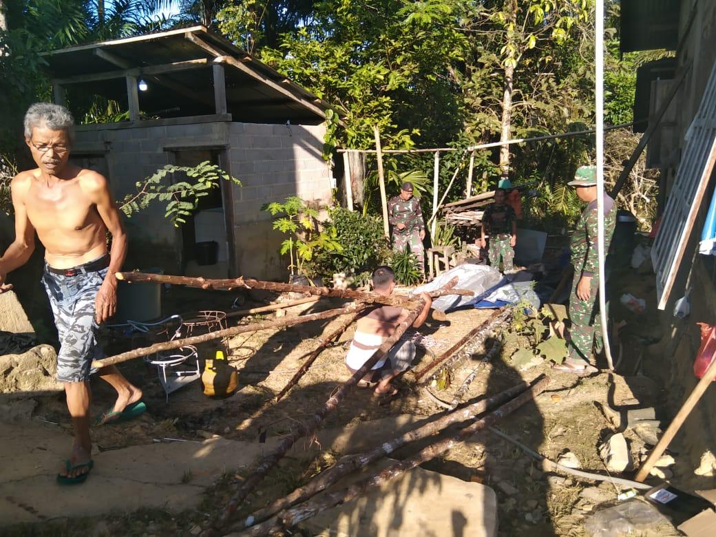 Tampak terlihat anggota satgas TMMD bersama warga yang sedang bahu-membahu untuk membuat dapur umum.