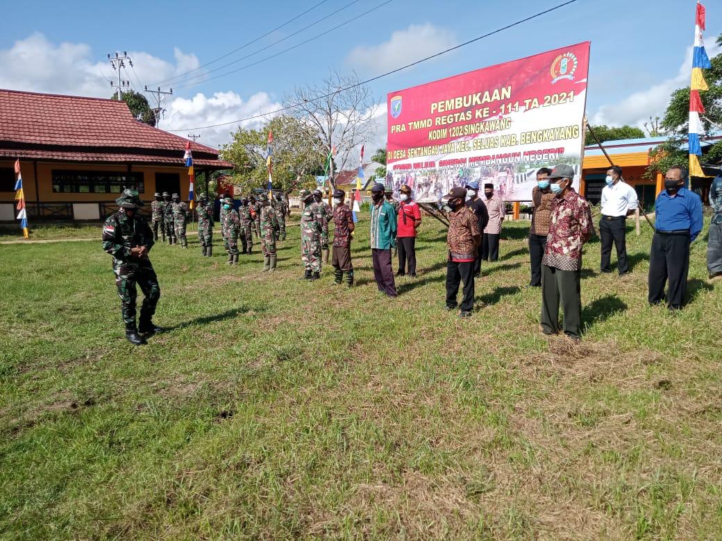 Bengkayang – Mengawali tugas pengabdian Satgas TMMD kepada masyarakat, Pasi Ter Kodim 1202/Skw Kapten Inf Sarmin memimpin apel anggota Satgas TMMD ke – 111, bertempat di lokasi TMMD, Rabu (16/06/2021).