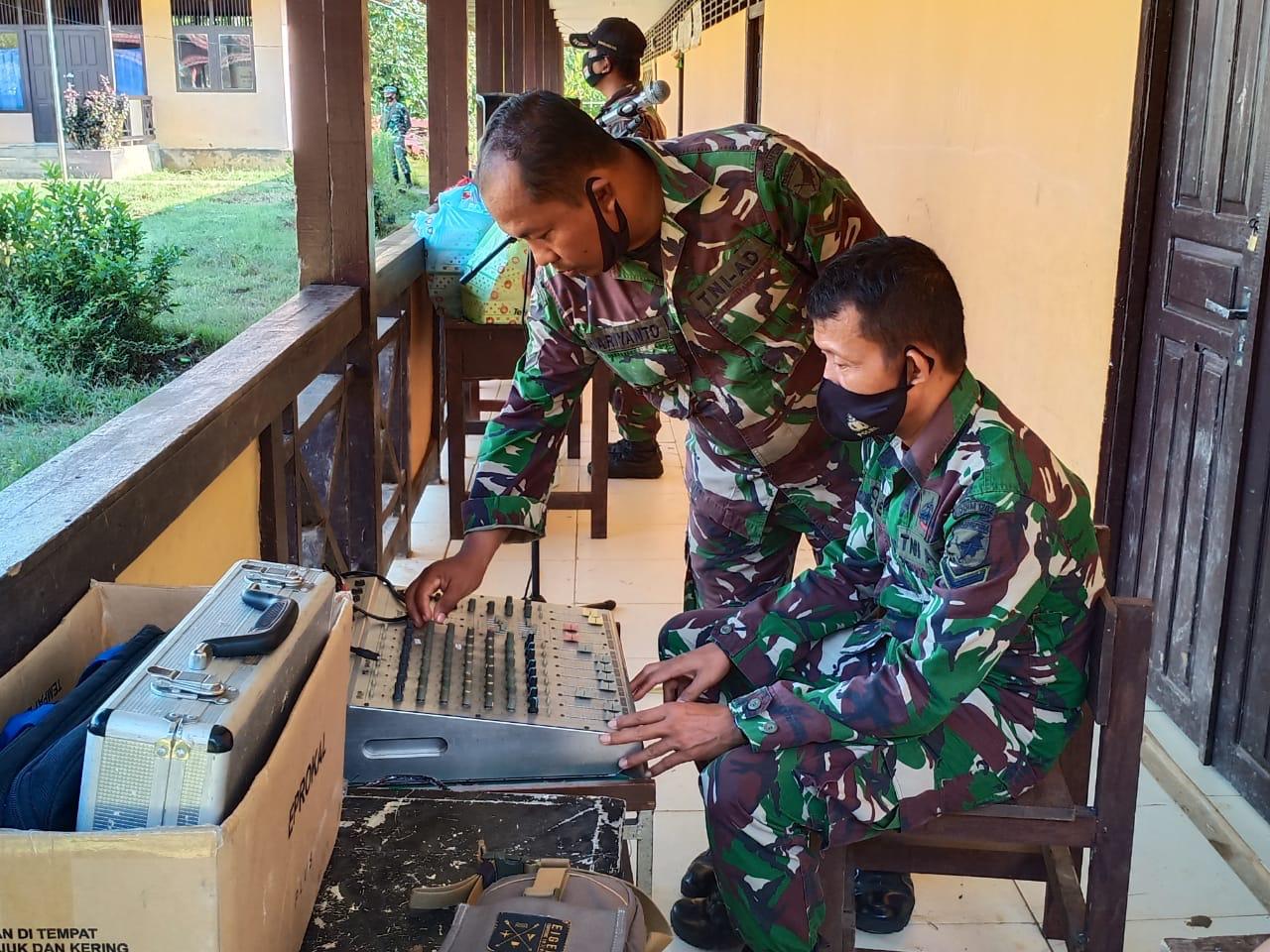 Satgas TMMD, dan pihak yang bertanggungjawab terhadap peralatan sound system sibuk memastikan semua bisa difungsikan dengan baik saat upacara pembukaan tiba.