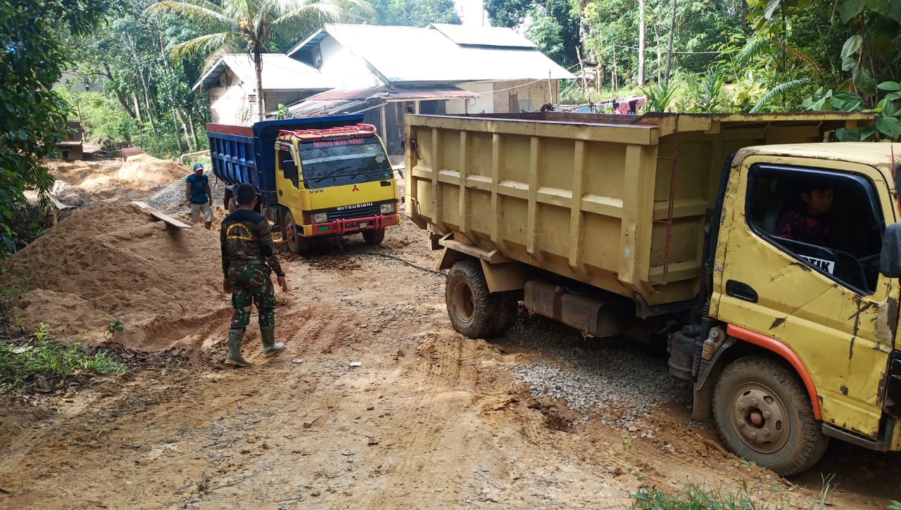 Bakri salah satunya supir truk pengangkut material menuturkan,sudah berapa kali saya membawa material antara lain batu dan pasir walaupun jalanan agak susah saya tetap semangat membawa material tersebut”tuturnya.