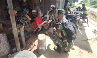 Satgas TMMD ikut memperbaiki motor milik warga.