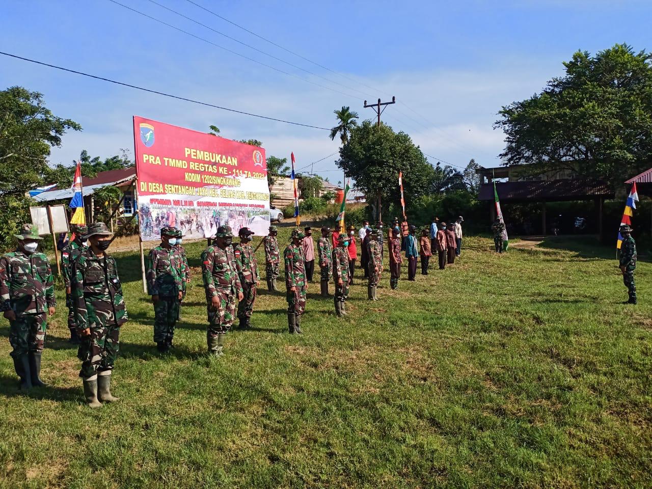 Bengkayang – Mengawali kegiatan pengerjaan sasaran fisik dan nonfisik, anggota Satgas TMMD ke -111 Kodim 1202/Skw melaksanakan apel pagi dipimpin Pasiter Kodim 1202/Skw Kapten Inf Sarmin di Posko TMMD Dusun Trimulya Desa Sentangau Jaya Jalan Trans Segorong Kecamatan Seluas Kabupaten Bengkayang. Selasa (15/06/2021).