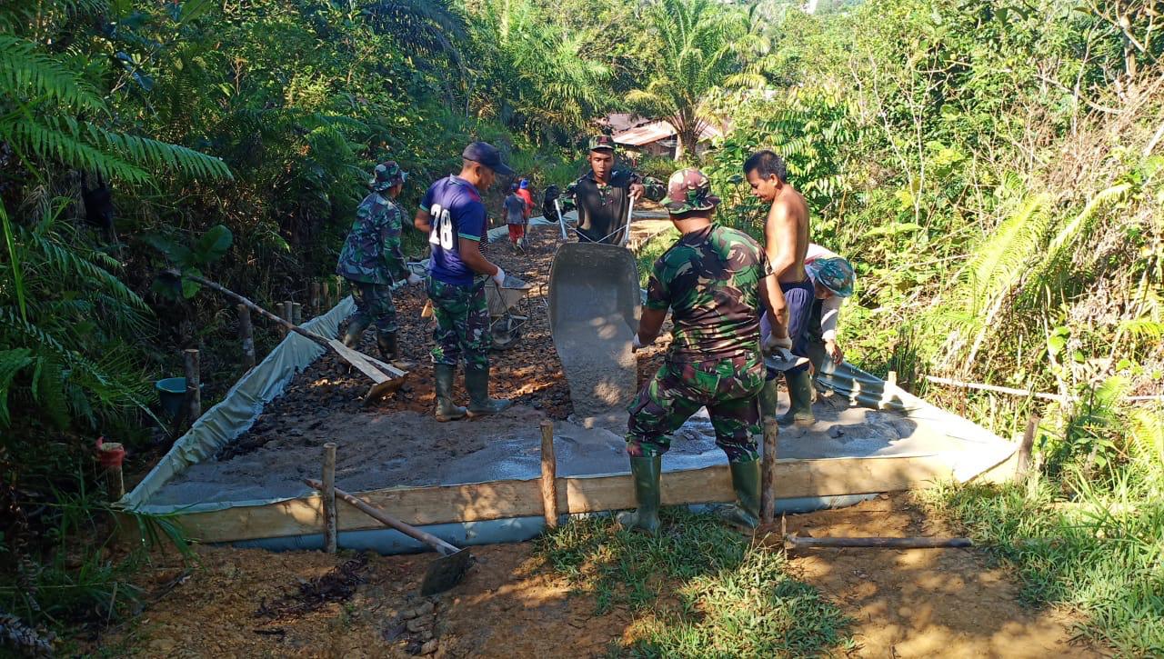“Kegiatan rabat beton sepanjang 350 Meter Lebar 4 Meter ini membutuhkan tenaga ekstra dalam menyelesaikanya. Jalan yang saat ini dalam pengerjaan rabat beton, sangat di butuhkan oleh masyarakat untuk keperluan mobilitas warga setiap harinya,” ungkap Komandan Komando Rayon Militer (Danramil) 1202-04/Seluas, Serma Hamdani