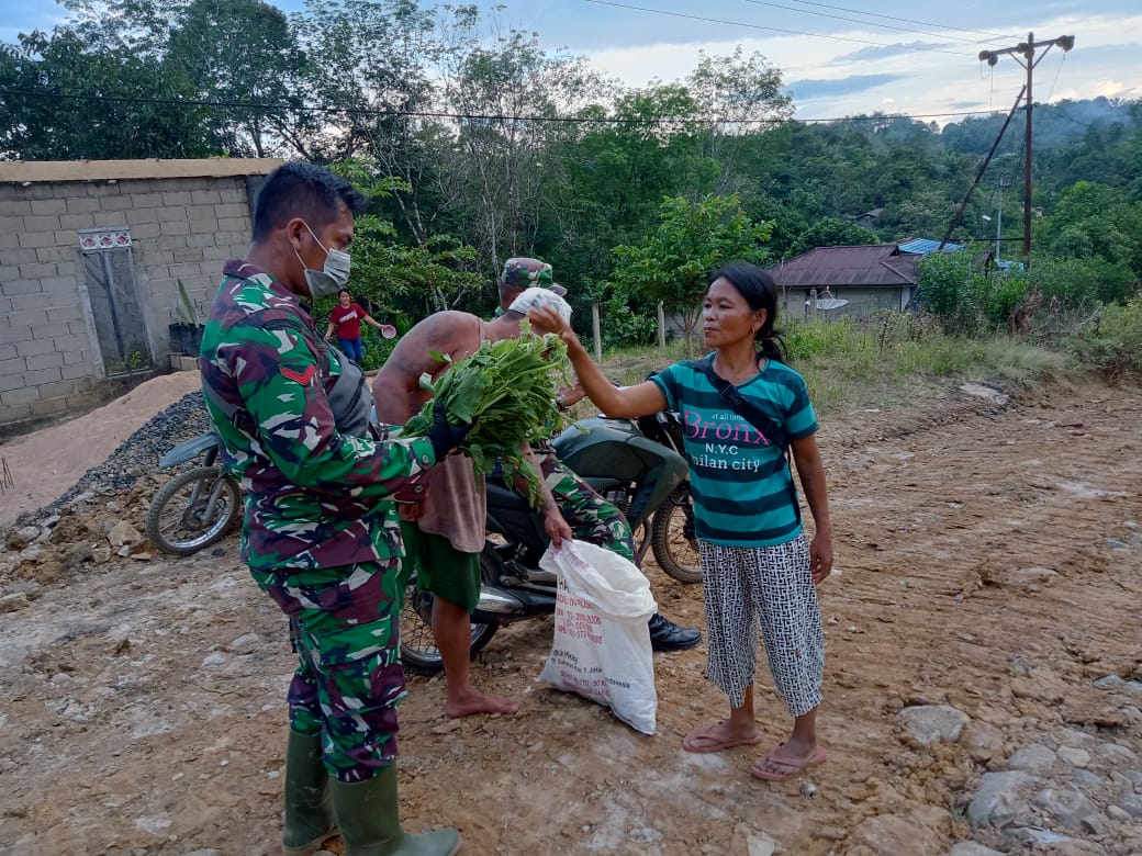 Satgas TMMD 111 Kodim 1202 Diberikan Sayur oleh Warga Desa Sentangau Jaya