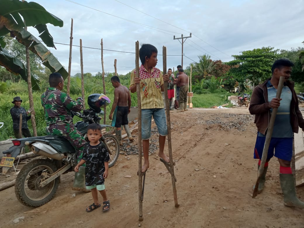 Satgas TMMD Ke 111 Kodim 1202/Skw Ajak Anak-Anak Bermain Egrang