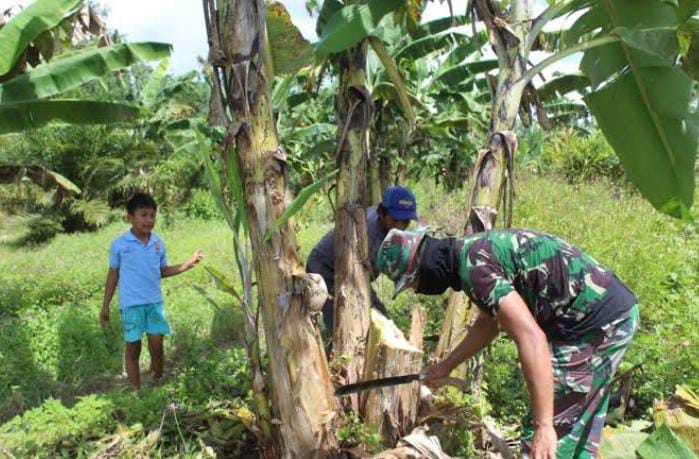 Satgas TMMD Ke 111 Kodim 1202/Skw Bantu Warga Tebang Pohon Pisang.