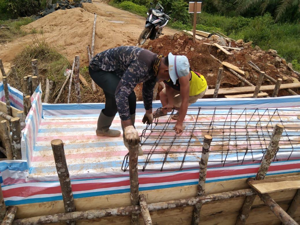 Satgas TMMD Ke 111 Kodim 1202/Skw Rangkai Kawat Besi Untuk Kerangka Cor Pembangunan Jembatan
