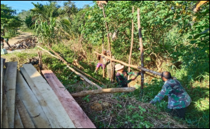 Pembangunan jembatan, dilakukan secara gotong-royong bersama warga setempat. Semangat gotong-royong ini harus terus dilestarikan. Karena selain membangun kekompakan warga, juga untuk mempererat tali persaudaraan,” ucap Dansatgas.