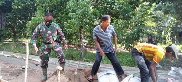 Kubu Raya – Memasuki sepekan terakhir atau 9 hari terkahir personil satgas TMMD ke-111 Kodim 1207/Pontianak tetap menunjukkan semangat yang luar biasa, tampak personil satgas TMMD dan masyarakat Dusun Maju Jaya, Desa Kuala Mandor B tetap bersama dan bergotong royong melanjutkan pengerjaan rabat beton jalan yang masih tersisa 300 meter, Kamis (08/07/2021).