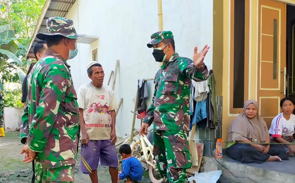 Kubu Raya – Dansatgas TMMD ke-111 Kodim 1207 Pontianak (Kolonel Inf Jajang Kurniawan, S.IP., M.M.) saat berbaur dengan warga di lokasi TMMD ke-111, Rabu (07/07/2021).