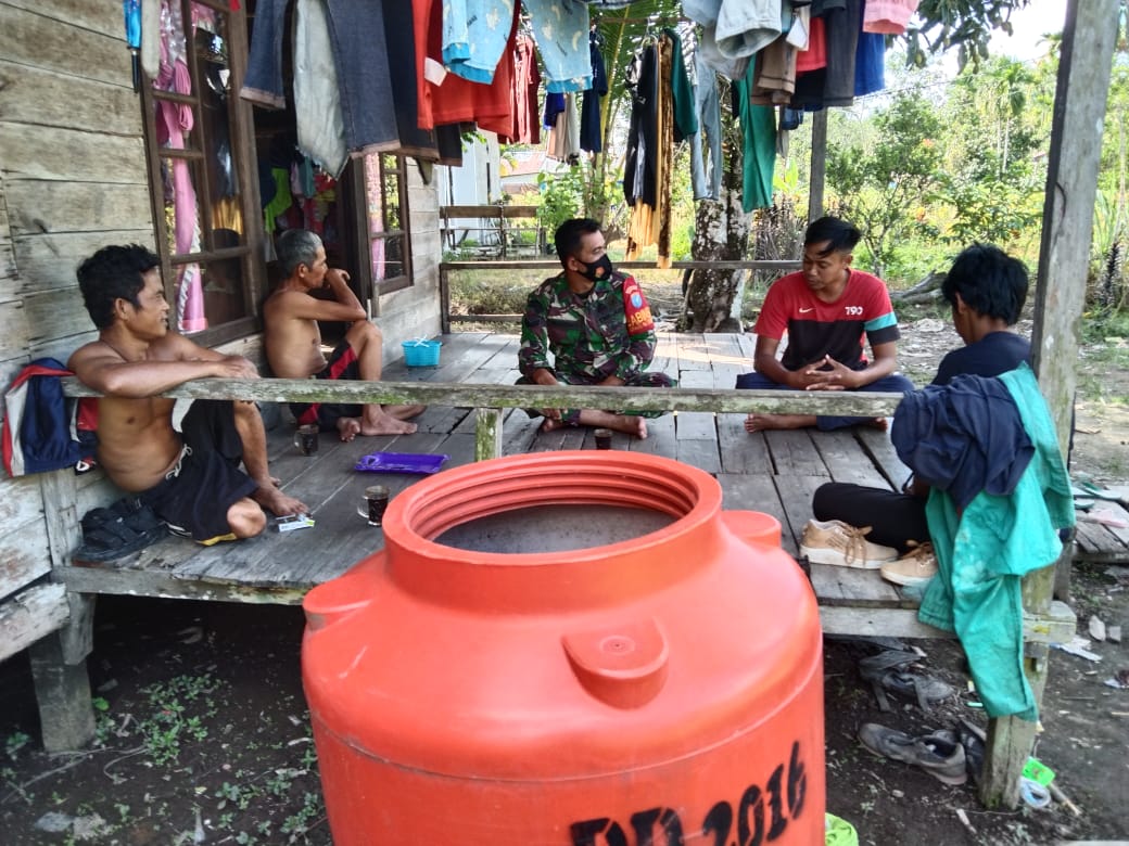 Sebagai bagian dari tugas pembinaan teritorial selain untuk menjaga kondusifitas di wilayah binaan, anggota Babinsa Koramil 1207-06/Sungai Ambawang Kodim 1207/Pontianak melaksanakan komunikasi sosial dengan warga saat istirahat dalam melaksanakan pra TMMD.