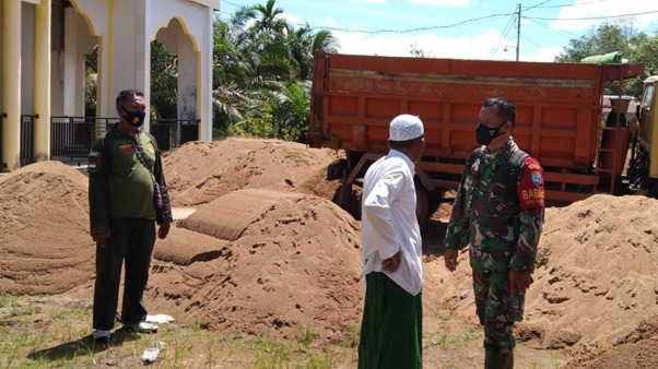 Danramil 1207-06/Sungai Ambawang Kodim 1207/Pontianak Kapten Kav. Edi Darmadi saat ditemui di lapangan mengatakan, “Material yang dibutuhkan dalam pekerjaan ini sudah siap dilokasi pengerjaan, ini dilakukan agar jangan sampai kehabisan bahan untuk dikerjakan” ujarnya.