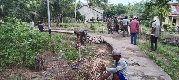 Kubu Raya – Satgas TMMD ke-111 Kodim 1207/Pontianak di Dusun Maju Jaya, Desa Kuala Mandor B terus berjuang dan maju terus tanpa pamrih dengan warga untuk membangun desa dan perkampungan, Selasa (22/06/2021).