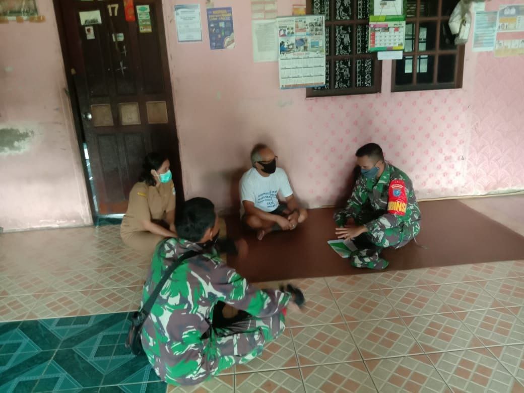 Babinsa Sertu Supari menyambangi kediaman bapak Antonius Linggat di Desa Pukau Manak , Kecamatan Embaloh Hulu, Kabupaten Kapuas Hulu, Sabtu (05/06/2021).