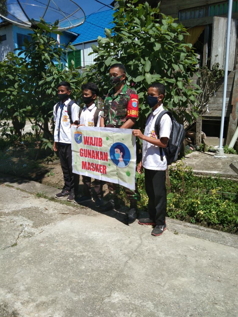Babinsa 1206-09/Jongkong Ingatkan Pelajar Wajib Gunakan Masker