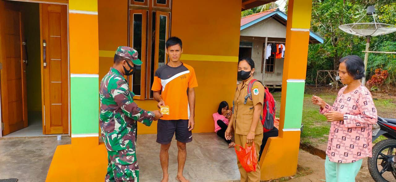 Silat hilir  – Berlokasi di Kampung Sentabai, Kecamatan Silat Hilir,  Kabupaten Kapuas Hulu, Serda Tomi Babinsa Koramil 1206-0/Batang Lupar Kodim 1206/Psb, mengunjungi salah satu warga binaannya untuk memberikan masker dan Vitamin, Selasa(15/06/21).