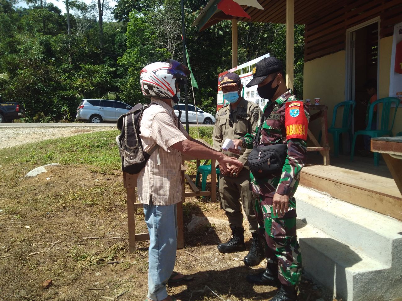 Boyan Tanjung – Anggota Koramil 1206-08/ Bunut Hilir, Babinsa Koptu Lili Jeri bersama Kepala Desa dan Babinkamtibmas Brigadir Heri Gunawan dan tim satgas covit 19 melaksanan monitoring kegiatan pelaksanaan jaga posko covit ppkm Mikro di Desa Nanga Sangan, Kec Boyan Tanjung, Rabu (16/06/2021).