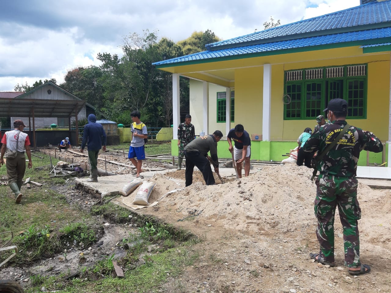 Koramil 1206-09/Pebgkadan Serda Andre Ginola membantu pengecoran tempat wudhu, ini merupakan wujud rasa kepedulian terhadap wilayah binaannya