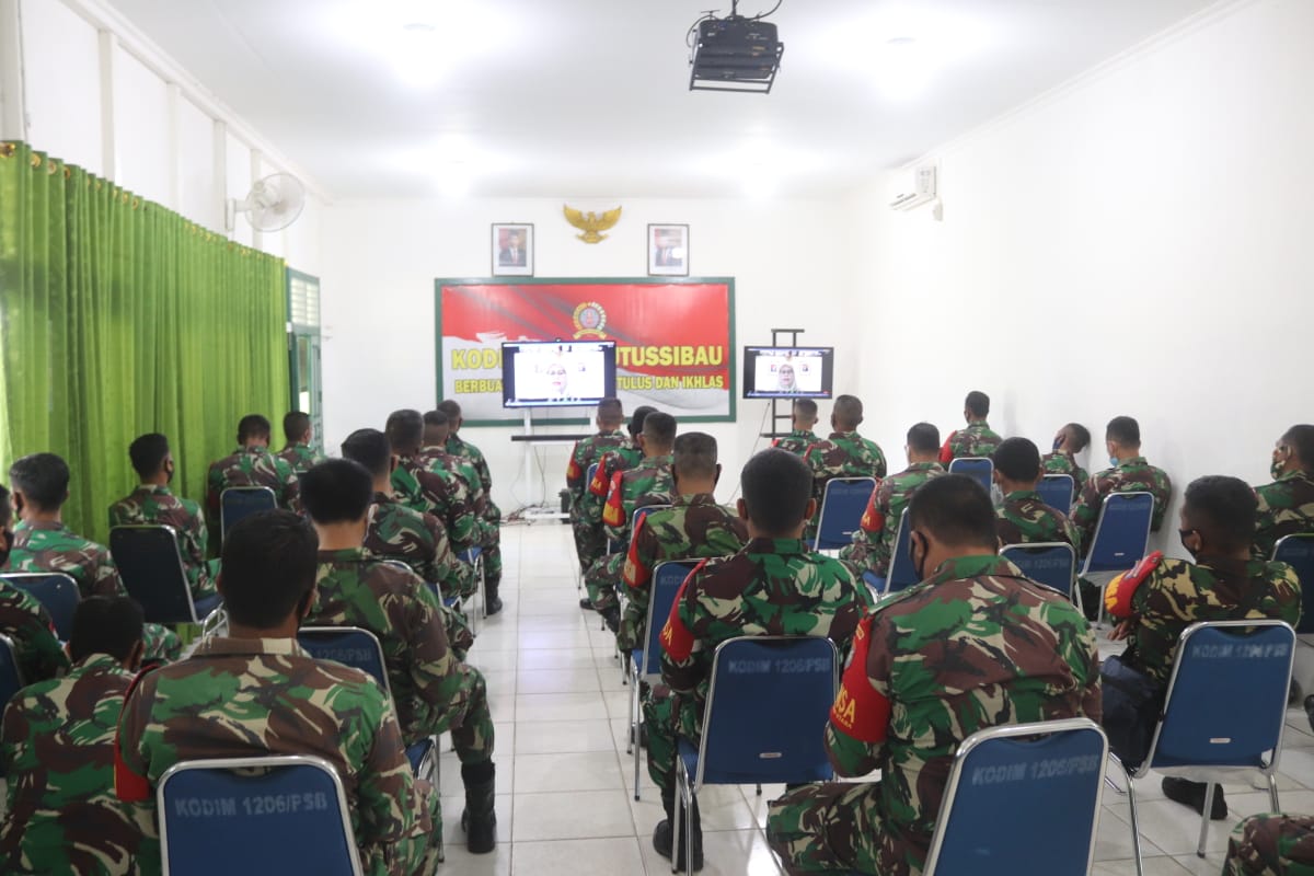 Putussibau – Ada 18 Koramil di Bawah Komando Daerah Militer (Kodim) 1206 / Putussibau, dimana masing-masing Koramil Mengirimkan Anggotanya untuk menerima pembekalan Tracing Covid 19 dari Dinkes Provinsi Kalimantan Barat, yang bekerja sama dengan Kodam XII /TPR secara Virtual melalui Zoom meeting bertempat di Aula Makodim 1206/PSB. Senin ( 14/06 /2021)