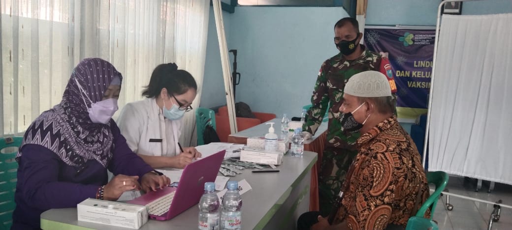 Kapuas Hulu – Babinsa Koramil 06/Putussibau Utara Kodim 1206/PSB, Serda Suranto dampingi para Purnawirawan TNI AD dan Warakawuri untuk di vaksin Covid-19, sesuai Program Pemerintah dan Program TNI, dengan pelaksanaan terpusat di Puskesmas Putussibau Selatan, Kabupaten Kapuas Hulu, Sabtu (05/06/2021).