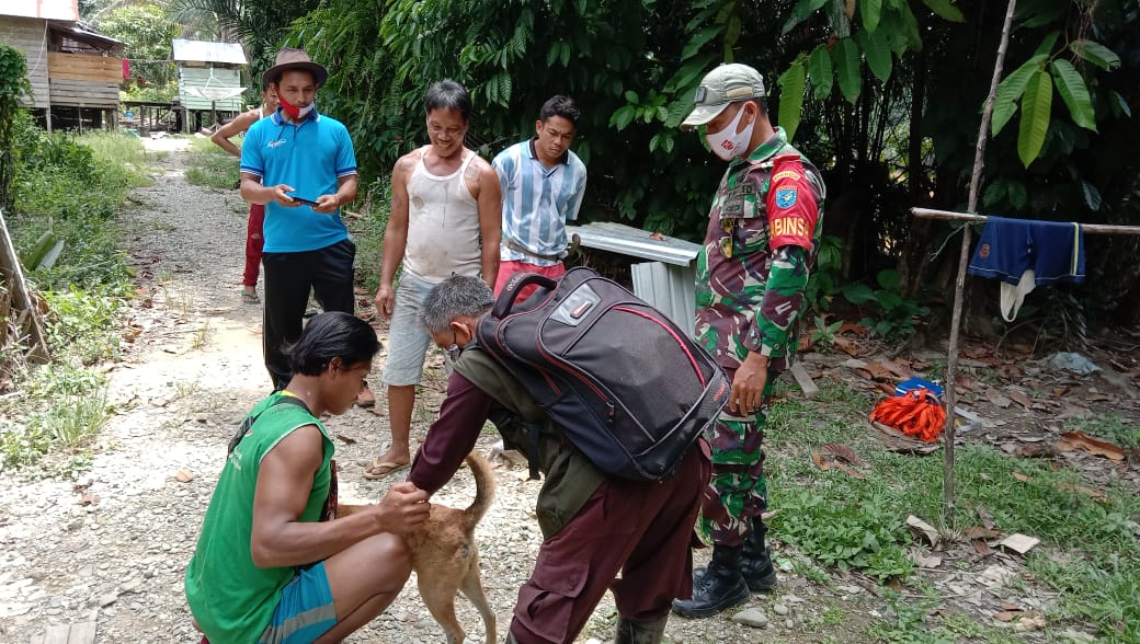 Babinsa Koramil 1206 – 05/Embaloh Hulu Bantu Sukseskan Vaksin Rabies Gratis