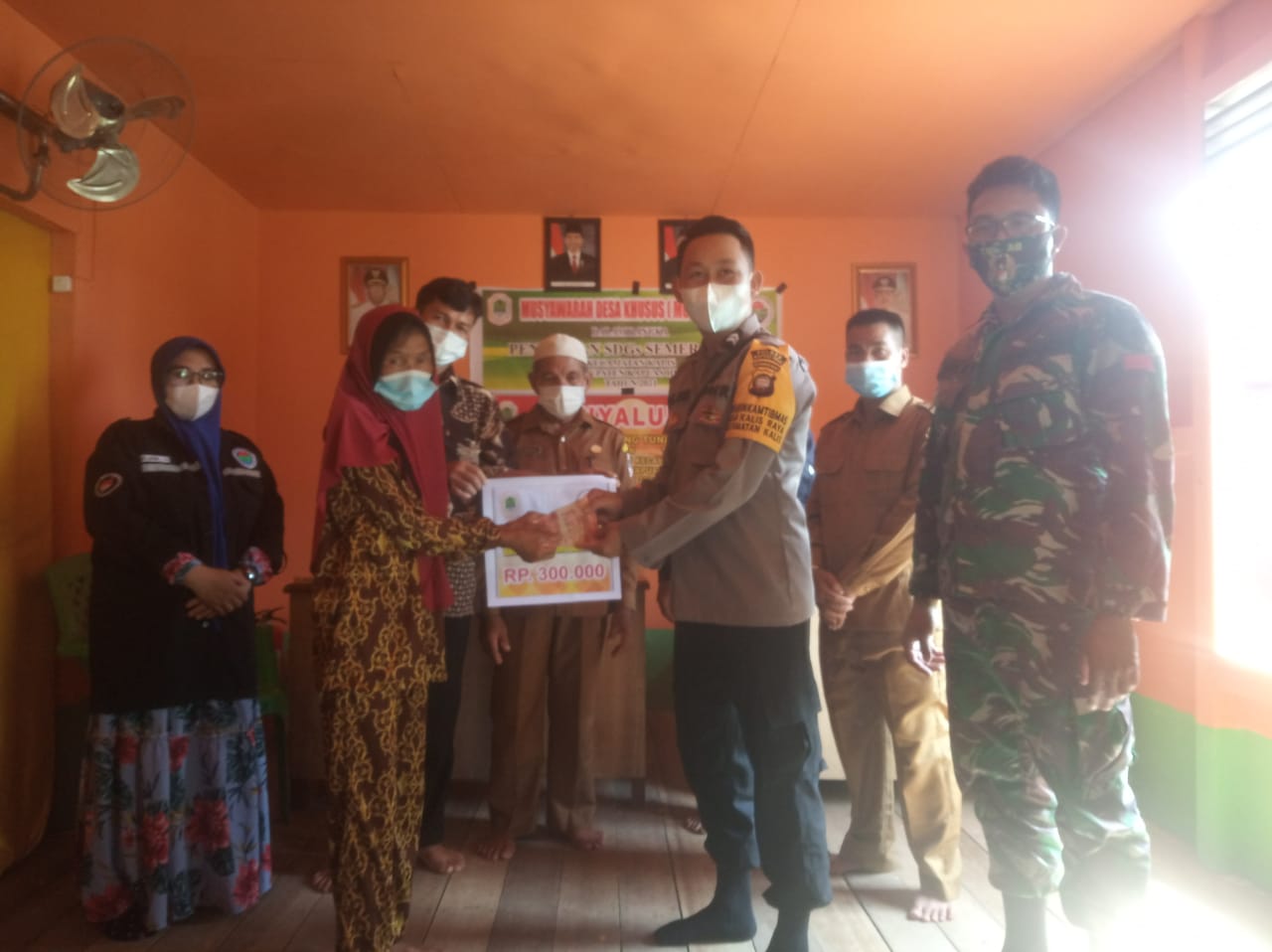 Kalis – Kopda Agie Amanda Babinsa Semerantau dan Segiam anggota TNI dari Koramil 12 Kalis Kodim 1206 Psb membantu menyalurkan Bantuan Langsung Tunai (BLT) tahap pertama di wilayah binaanya Desa Semerantau Kecamatan Kalis. Rabu, 02 Juni 2021.