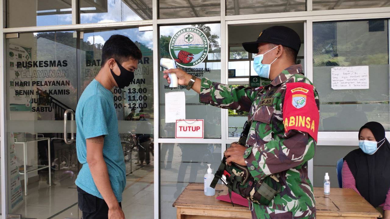 Batang Lupar – Dalam rangka mencegah dan mengantisipasi penyebaran Covid 19 Babinsa Koramil 1206-03/Batang Lupar Kodim 1206/Psb selalu menghimbau dan mengingatkan masyarakat untuk selalu memakai masker bertempat di Puskesmas, Kecamatan Batang Lupar, Kabupaten Kapuas Hulu. Sabtu (19/06/21)