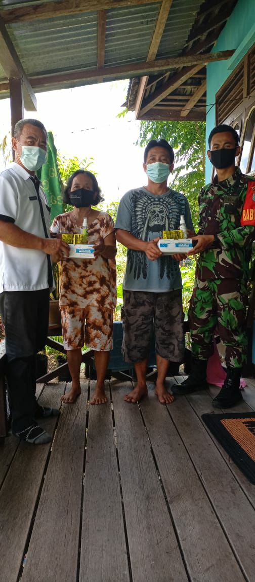 Seberuang – Dalam rangka mewujudkan wilayah yang aman, sehat dan kondusif, Koramil 1206-16/Seberuang beserta Satgas Covid-19 Sejiram, Bagikan Alat Protkes kepada Waraga Secara simbolis kepada Kepala Dusun.