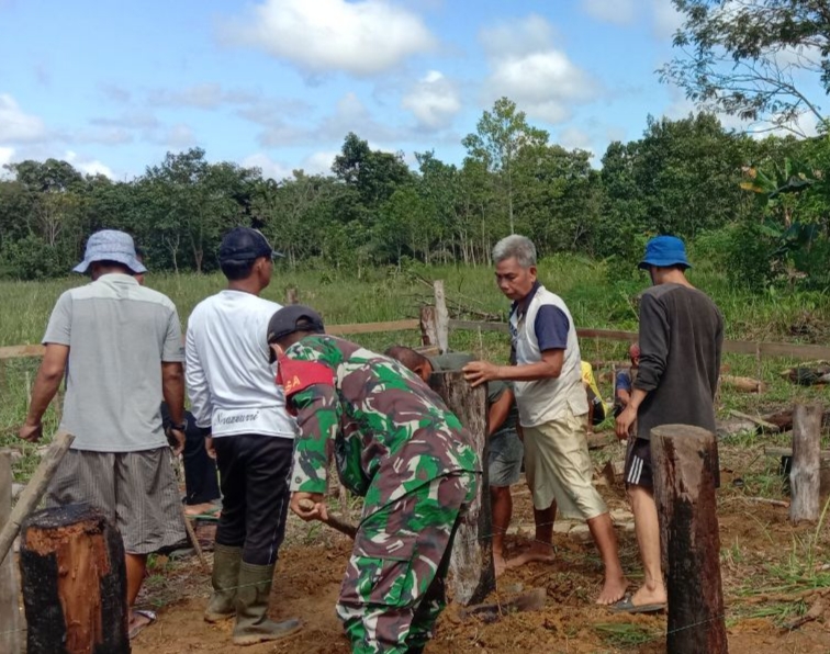 Manunggal Dengan Rakyat, Babinsa 1206 – 01/Embaloh Hilir, Bantu Warga Binaan Penancapan Pondasi Rumah