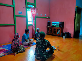 Pengkadan – Terlihat Babinsa 1206-09/Jongkong bersama warga nonton bareng pelaksanaan upacara dalam memperingati Hari Lahirnya Pancasila secara langsung di siaran televisi di Desa Riam Panjang Kecamatan Pengkadan Kapuas Hulu Kalimantan Barat. (02/06/2021)