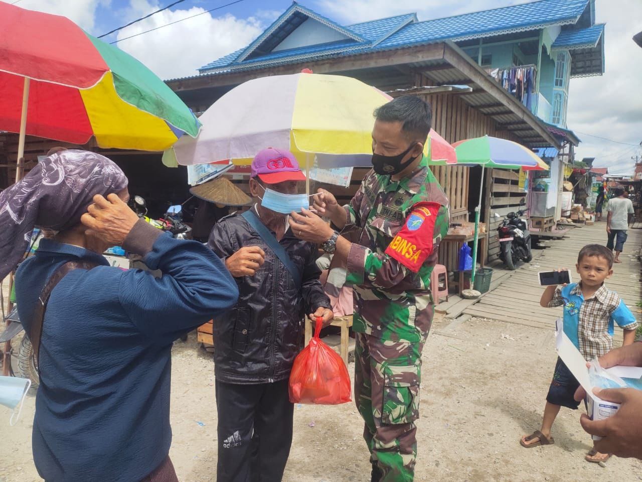 Pendisiplinan COVID-19 TNI-Polri Jongkong Bagikan Masker Lintas Senara