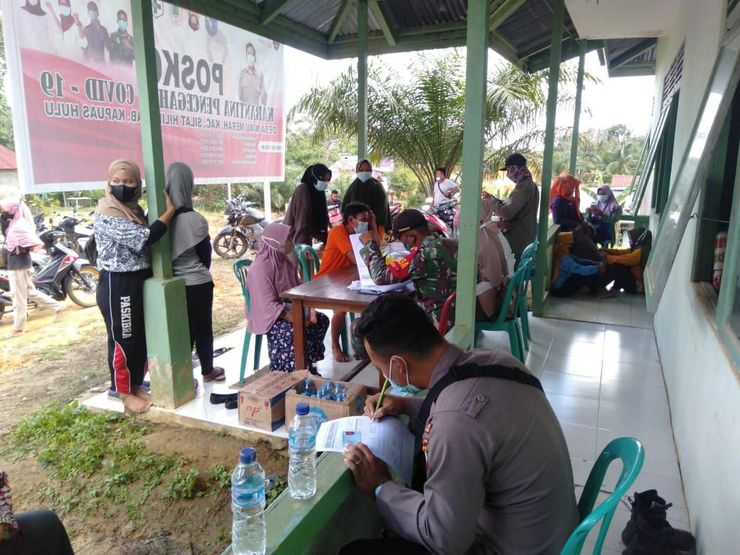Silat Hilir – Bintara Pembina Desa (Babinsa) dan Bhabinkamtibmas serta tim dari puskesmas mendampingi Bidan Desa Miau Merah, Kecamatan Silat Hilir, Kabupaten Kapuas Hulu. Minggu (30/05/21)