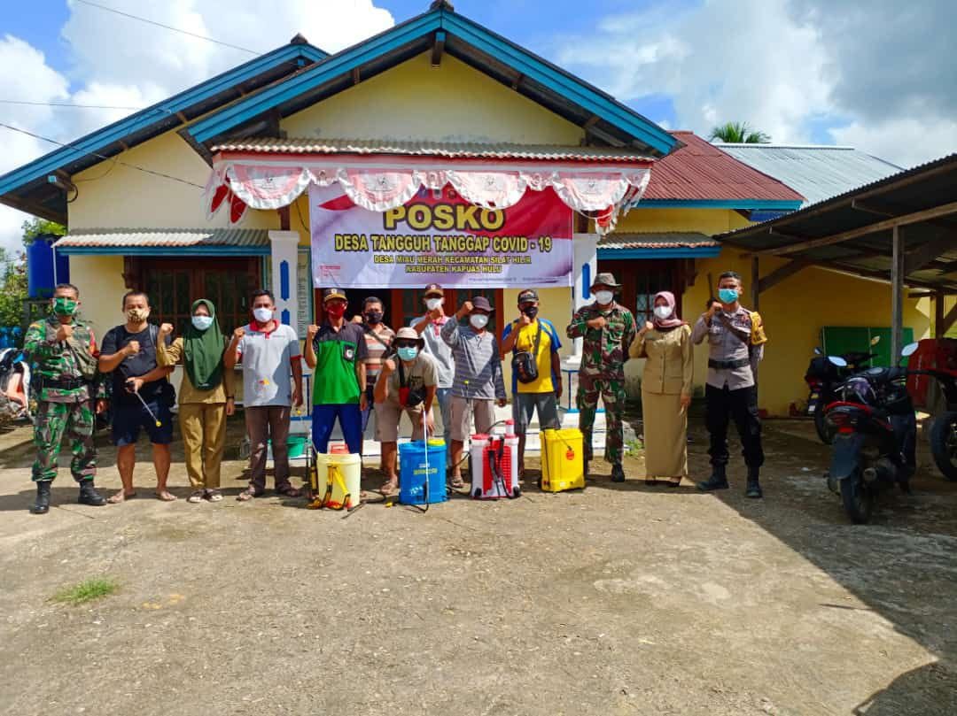Putuskan Penyebaran Covid-19, Babinsa Koramil 1206 – 17/Silat Hilir, Bersama Satgas PPKM Semprot Disinfektan