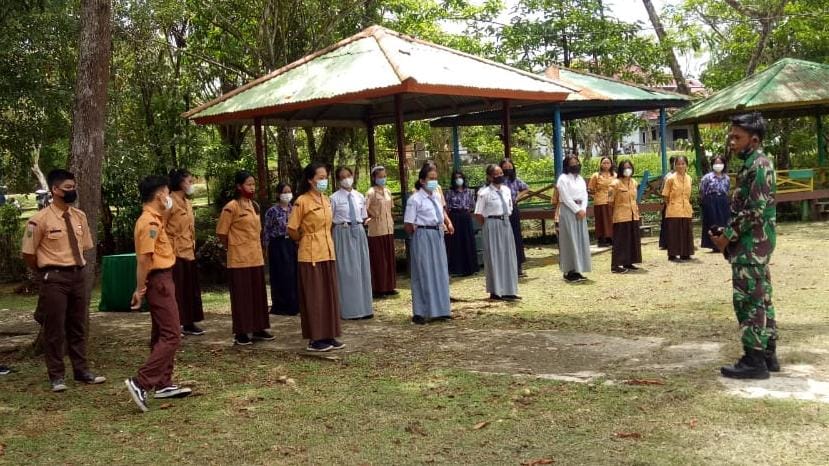 Untuk Menumbuhkan Jiwa Kekompakan, Personel Kodim 1206/PSB Latih Siswa-siswi PBB