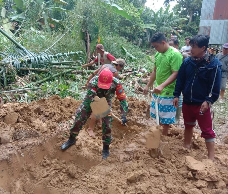 Wujudkan Kepedulian Kepada Warga Di Wilayah Binaannya, Babinsa Koramil 1206 – 05 / Embaloh Hulu Bantu Warga Gali Kubur