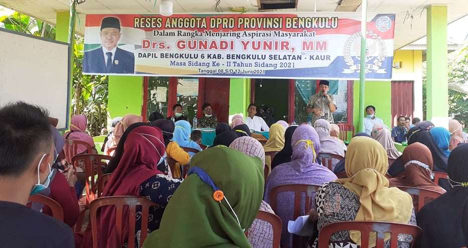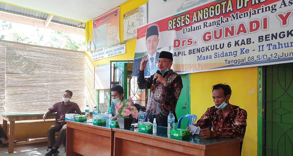 Berandang.com- Memasuki masa sidang ke-II Dewan Perwakilan Rakyat Daerah (DPRD) Provinsi Bengkulu tahun 2021, Dewan Provinsi kembali menjaring aspirasi masyarakat. Drs. Gunadi Yunir, MM, politisi Partai Persatuan Pembangunan (PPP) daerah pemilihan IV menjemput aspirasi masyarakat mulai tanggal 8 hingga 12 juni 2021 di wilayah kabupaten Bengkulu Selatan.