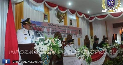 Dalam Paripurna, hadir Bupati Bengkulu Utara Mian- Arie, Wakil Ketua DPRD I Juhaili Waka II Herliyanto Hazadin, Kodim 0423 Bengkulu Utara, Kapolres Bengkulu Utara AKBP Anton Setyo Hartanto beserta Jajaran. Kajari Bengkulu Utara Elwin Agustian Khar dan seluruh OPD serta para tamu undangan, ketua forum BPD Bengkulu. *(Adv)