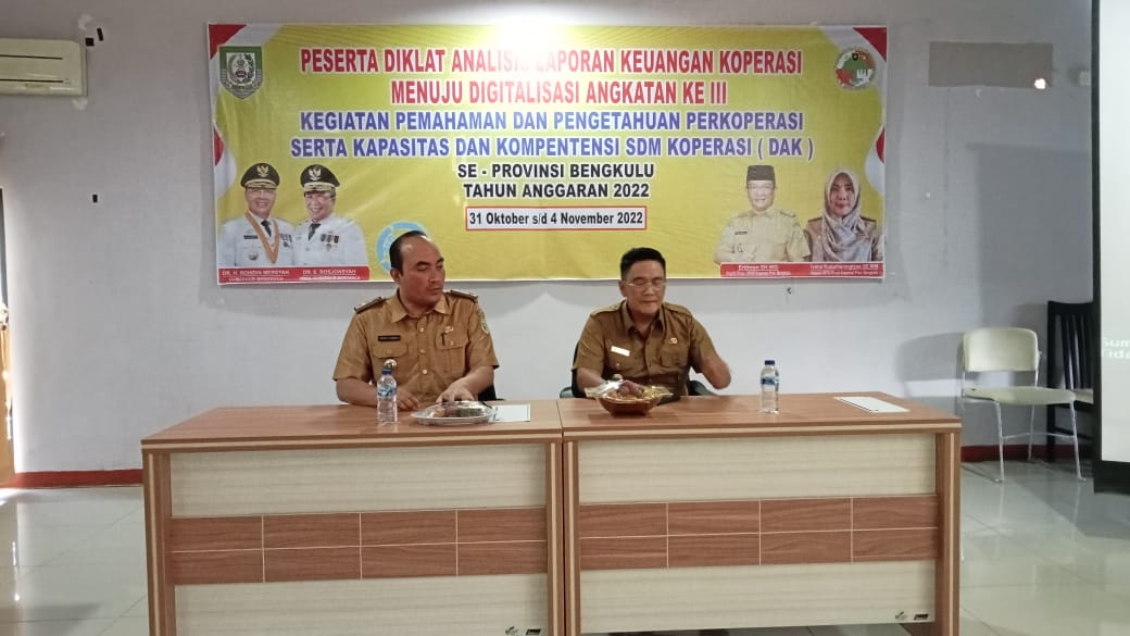 Berandang.com-  Dinas Koperasi dan UKM Provinsi Bengkulu, kembali menggelar pendidikan dan pelatihan (Diklat) Analisis Laporan Keuangan Koperasi Menuju Digitalisasi angkatan ke-III tahun 2022. Selasa (31/10/2022).