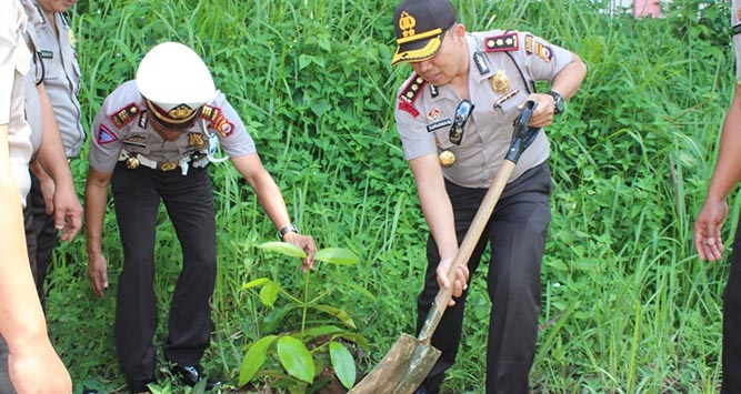 Tak hanya menanam di lingkungan Mapolres saja, pihaknya juga melakukan penanaman di asrama dinas mereka masing-masing. Sebab dengan program penghijauan ini udara di sekitar akan menjadi lebih segar dan dapat mengurangi polusi udara.