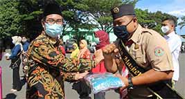 Bertempat di Lapangan Sriwijaya Makorem 041/Gamas, penyerahan Masker secara simbolis ini dilaksanakan usai Apel Gelar Pasukan Siaga Bencana.
