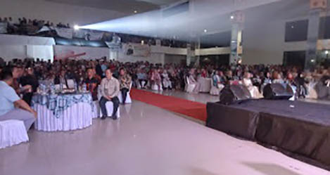 Suasana semakin meriah saat Sekretaris Daerah Fauzan Khoiri bernyanyi bersama Kepala Dinas Kesehatan yang juga Ketua Tim Penggerak PKK Bunda Hepy Safriani untuk menghibur penonton di Gedung Serbaguna Pemkab Empat Lawang. *(San)